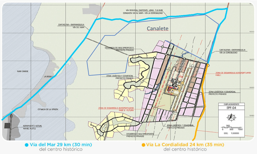 The New Airport will be located directly south of Canalete on the neighboring property.