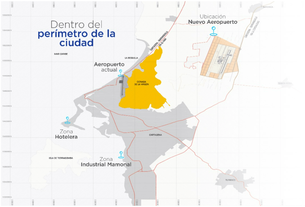 The new airport will be an extension of the existing Rafael Núñez airport, near Bayunca, in an area close to 4900 acres, of which the air terminal would have 1400.